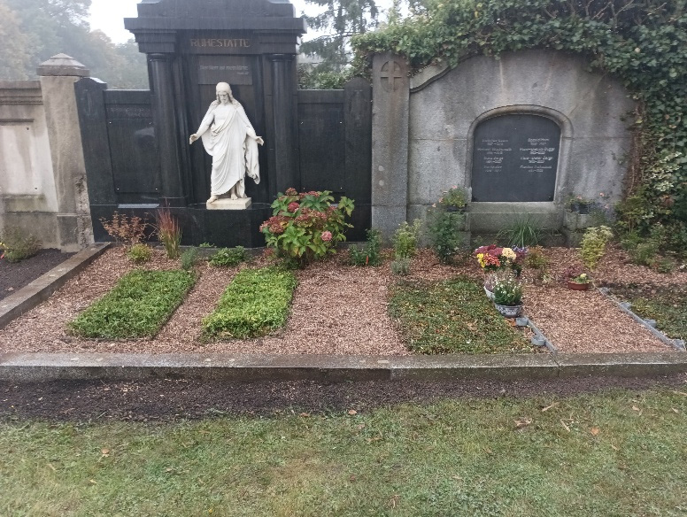In Etzdorf (Foto) gibt es noch die Gemeinschaftsanlagen wie gewohnt an der Friedhofsmauer, auch hier haben wir eine deutliche Verbesserung zum bisherigen Zustand erreicht und mit dem restaurierten, historischen Grabmal in der neuen Anlage ein besonderes Schmuckstück erhalten.